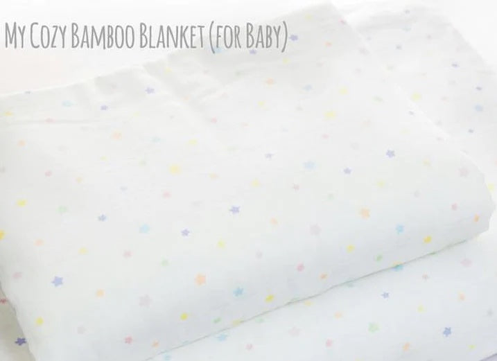 MY COZY BAMBOO BLANKET features 2 layers of bamboo msulin with a soft pad in between. Made from 70% silky soft bamboo and 30% natural cotton. It will be the cuddliest blanket your baby will ever know!