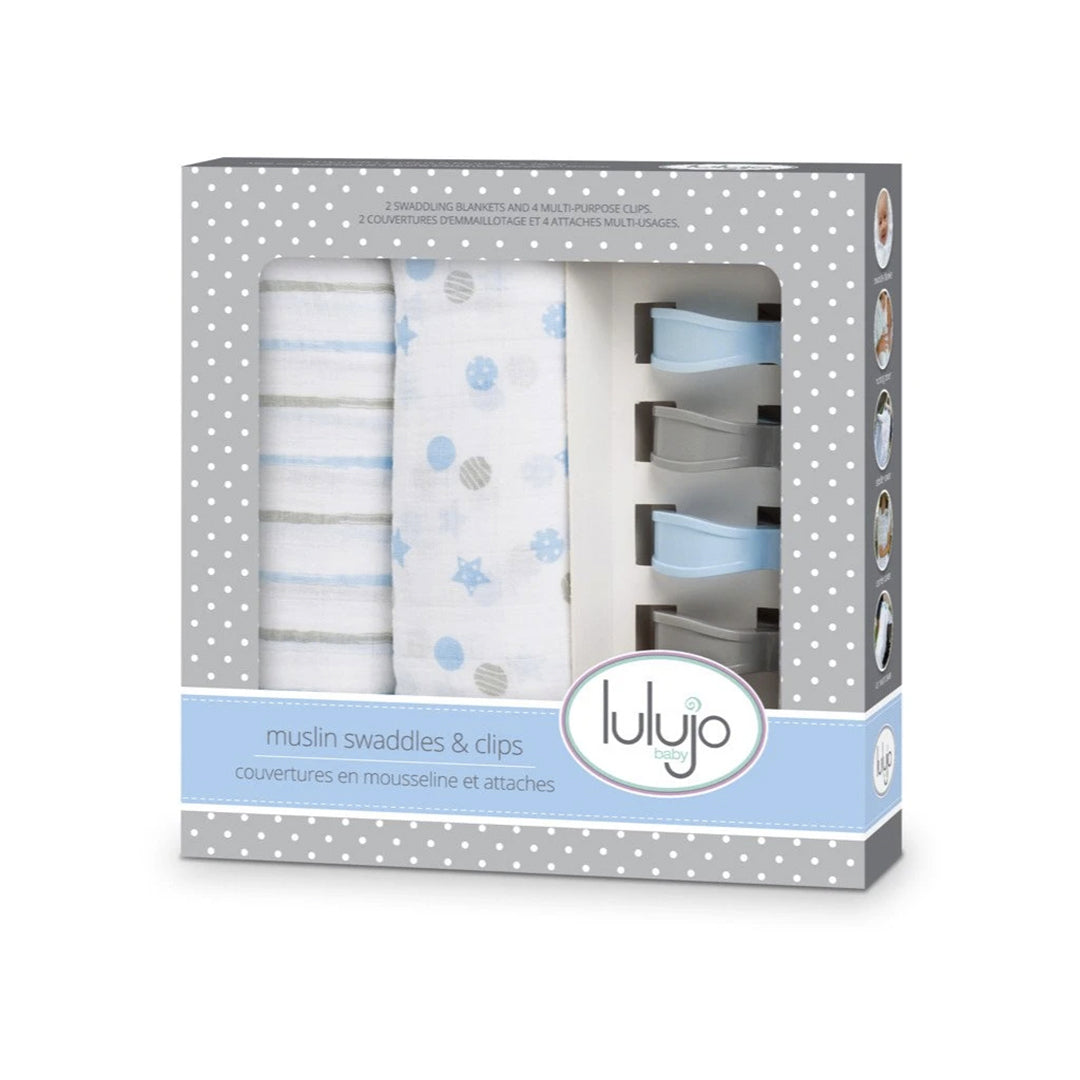 Lulujo Baby Cotton Muslin Set of 2 + 4 Clip Set