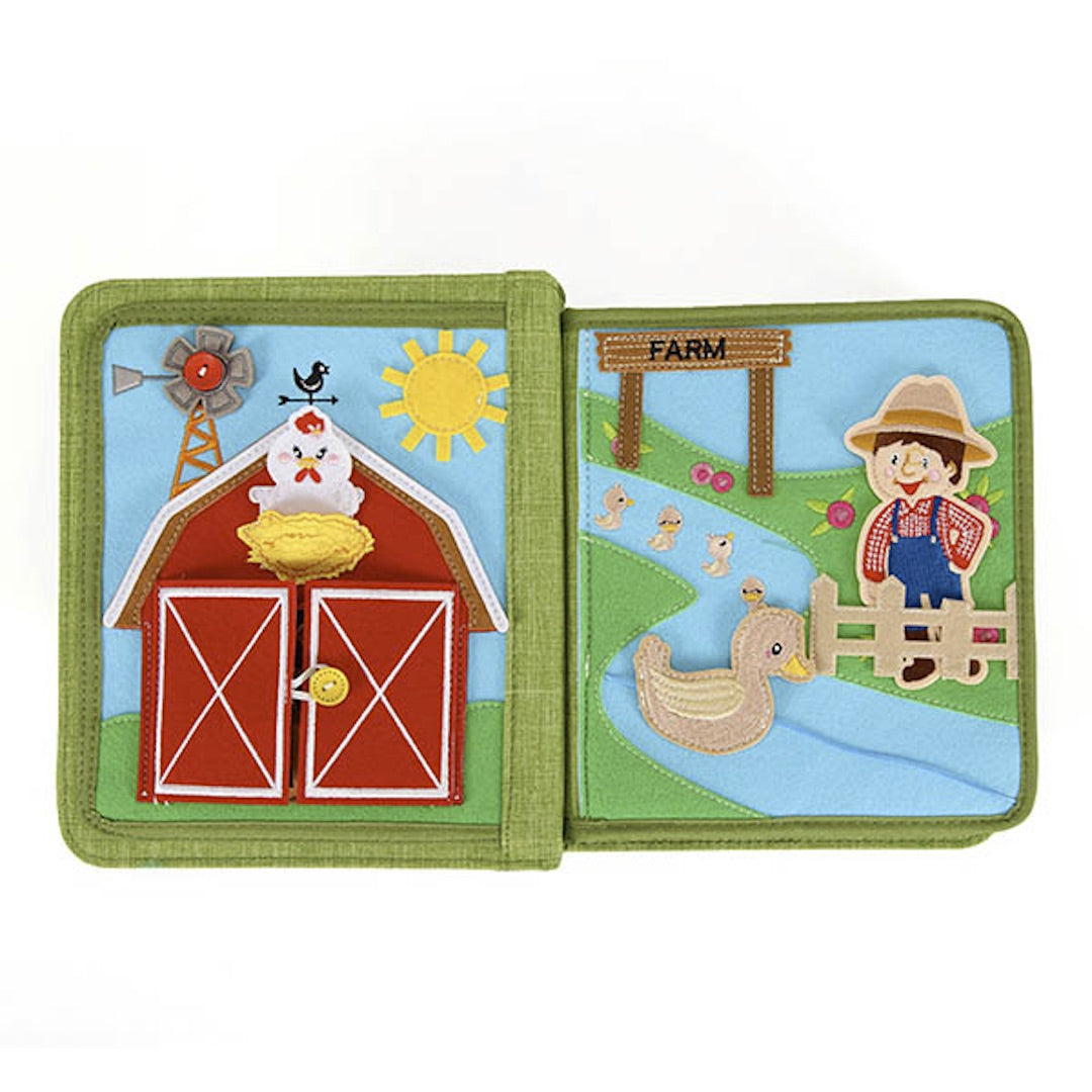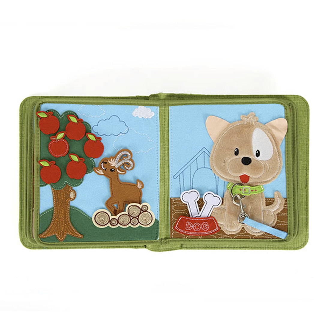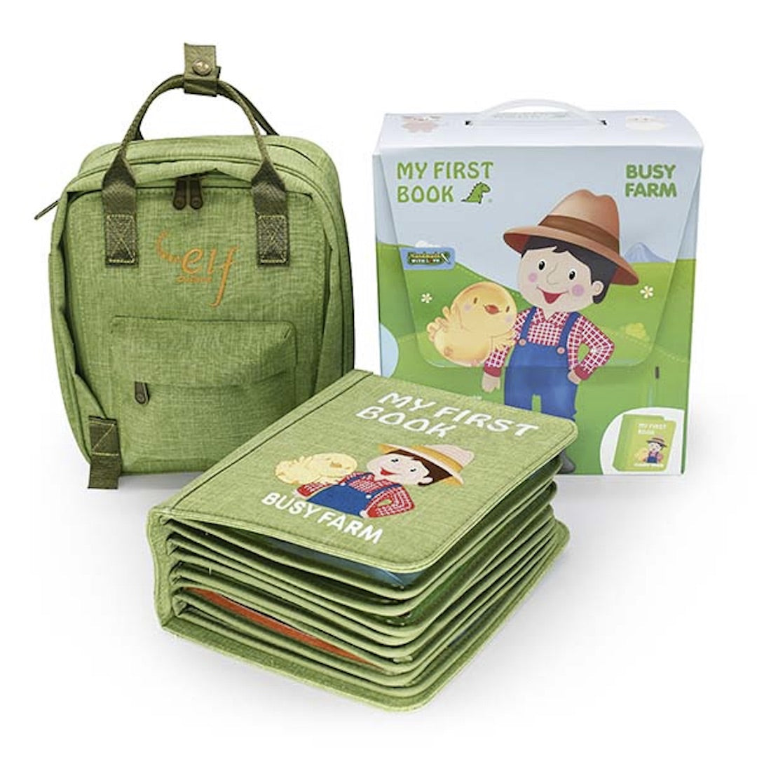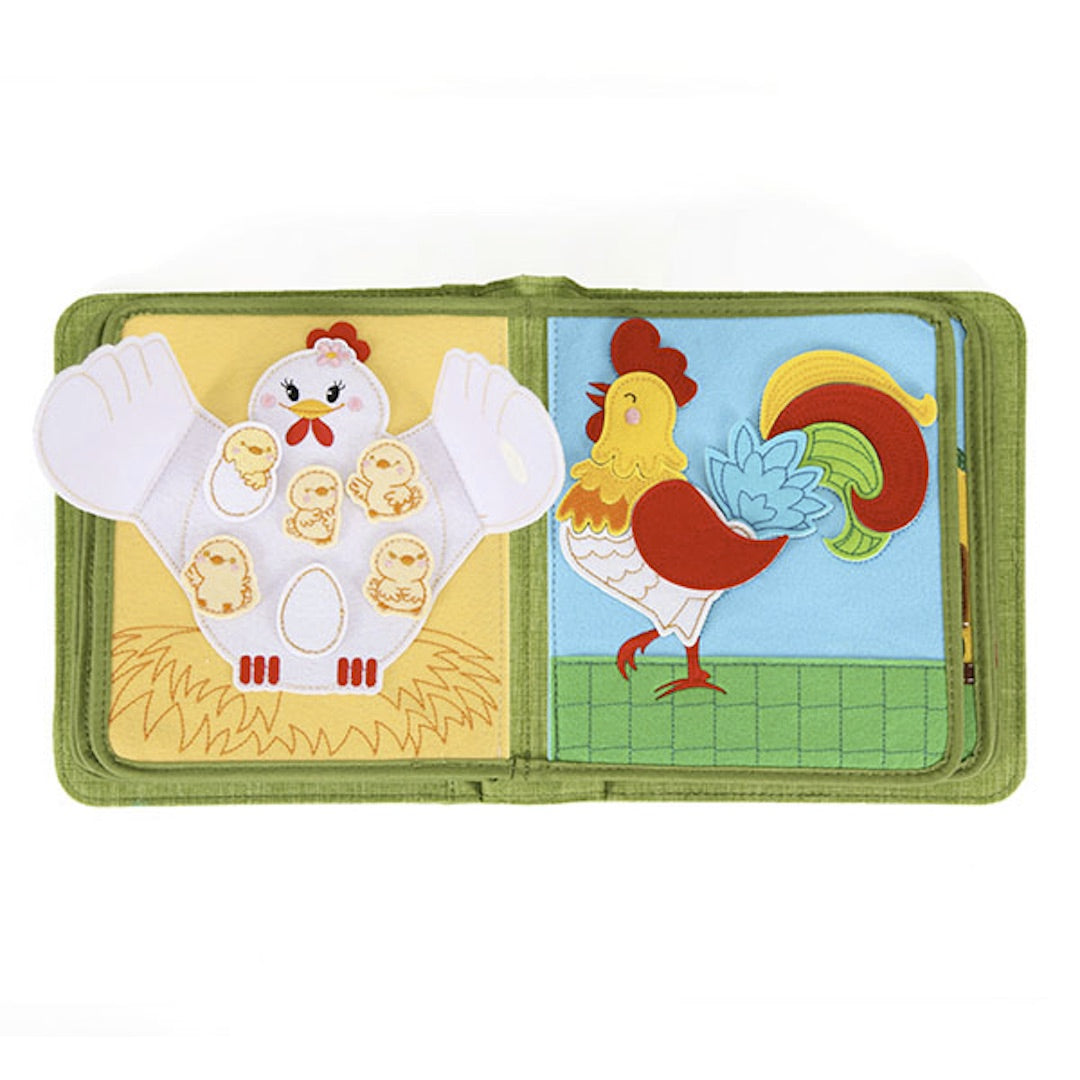 In a busy farm, men are working hard on feeding animals and transporting hay using carts; cats, dogs, chickens, and ducklings are jumping around at the same time. Can you find any other animals from the book? Naughty kittens, greedy goats and sheep, mice in the warehouse, honest cows, vigorous steeds... interesting farm animals in this cloth book will bring children a new cognitive experience.