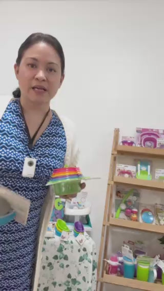 7 colorful bath cups are fun to link, stack, strain and pour water.