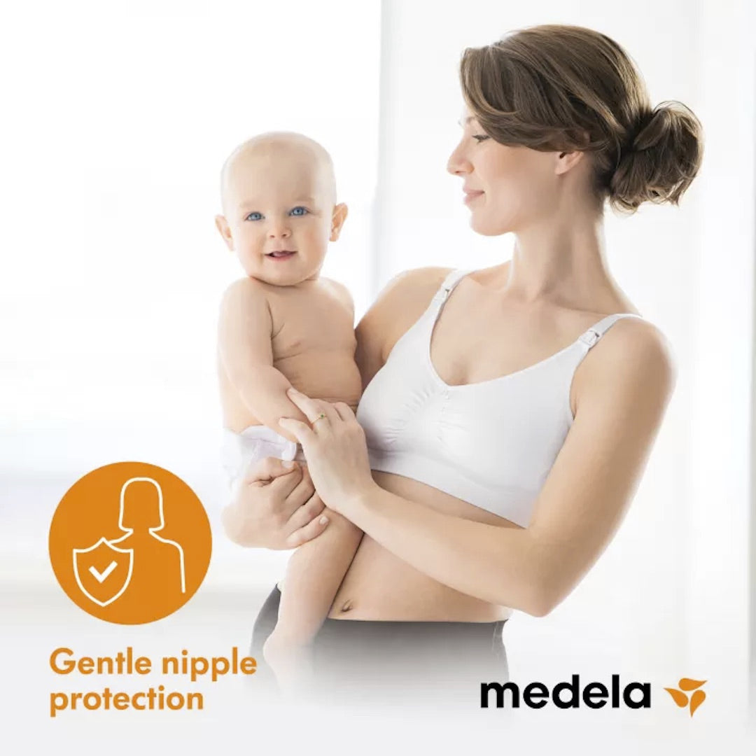 If you find your leaking breast milk from one breast as your baby feeds from the other, Medela milk collection shells can save this excess milk while you breastfeed.