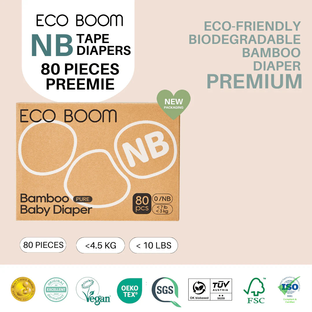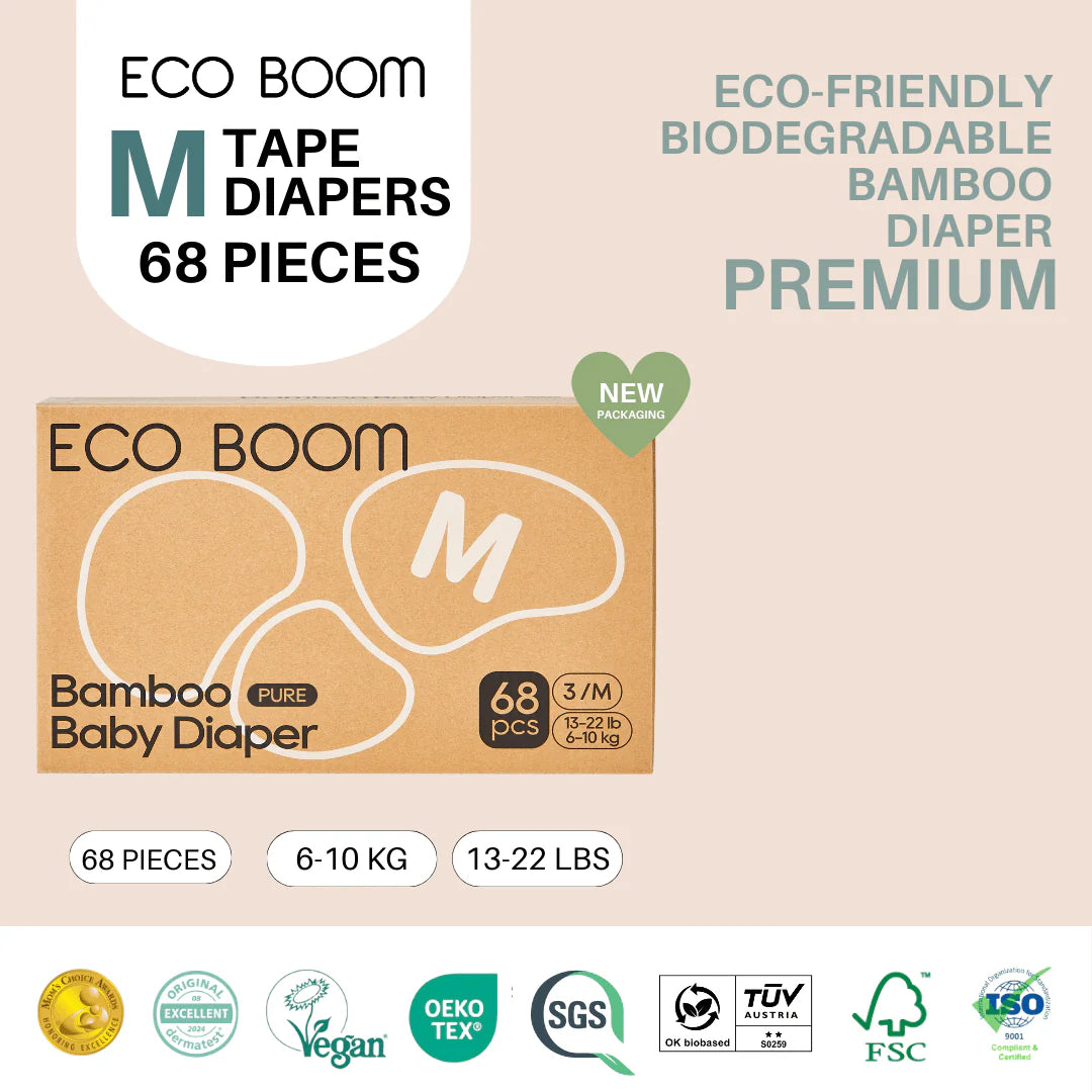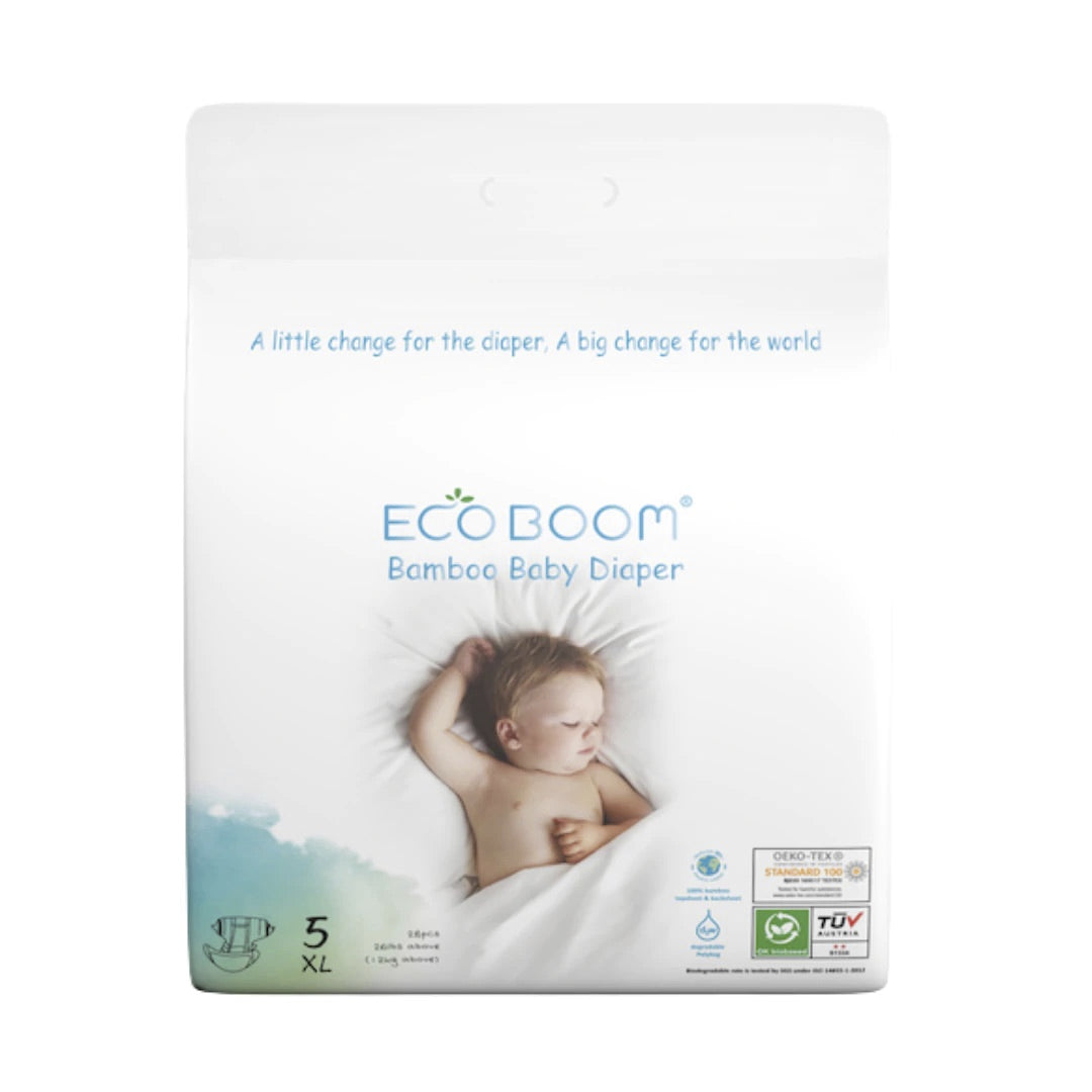 Introducing Eco Boom Bamboo Diapers, the eco-friendly diaper made with 100% biodegradable bamboo backsheet, which allows fresh air to circulate and keep baby's skin dry.