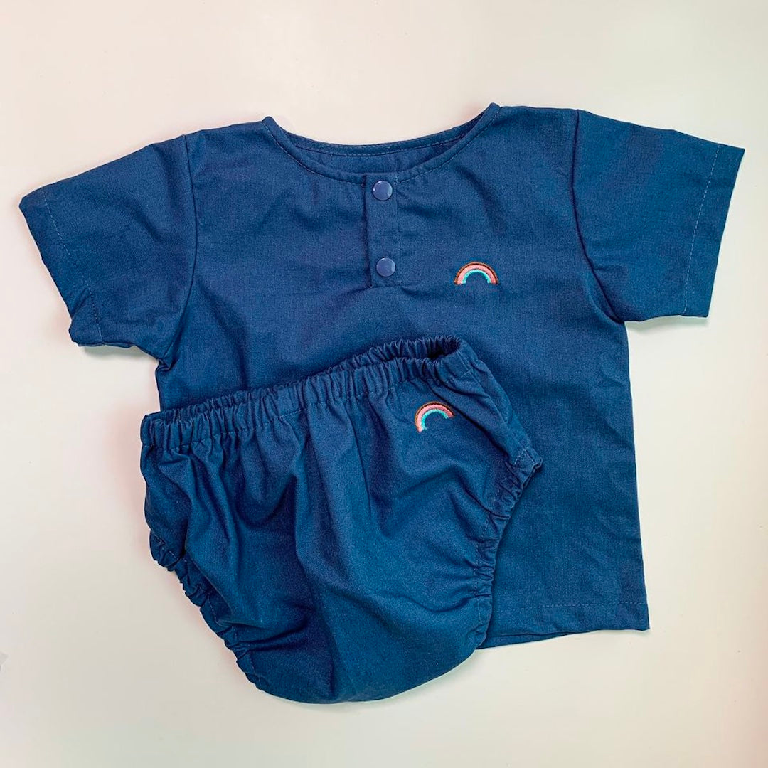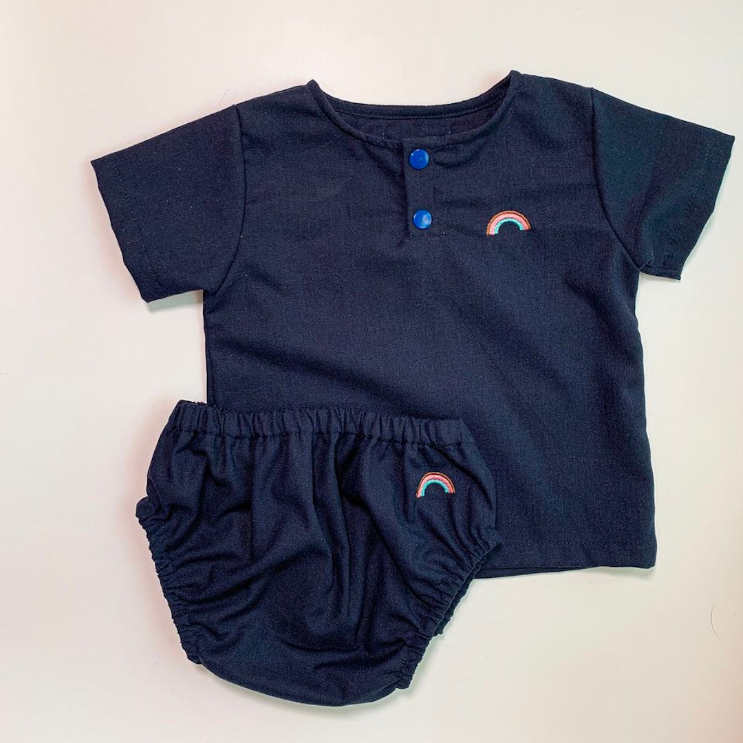 - Minimalist design that will never go out of style featuring embroidered rainbow.