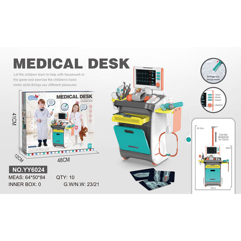 Turn your beloved child into a little doctor with this mobile medical cart where he/she can do check-ups for family members and friends. It comes with a complete set of medical tools such as syringe, thermometer, charts, pill box, and more. The stethoscope comes with light and sound. This playset can help build your child’s medical knowledge and take away his fear of going to hospitals.