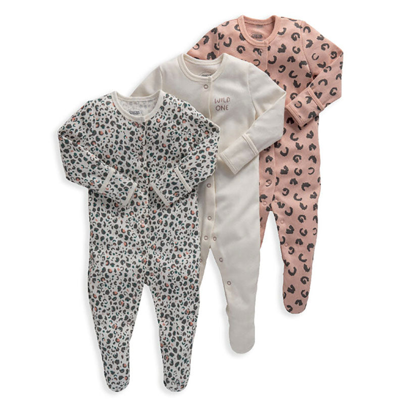 Mamas & Papas Leopard Print 3-Pack Sleepsuit