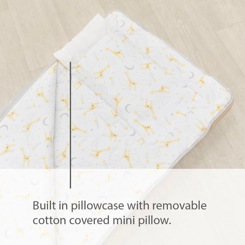 DIMENSIONS: Nap mat: 130 x 55cm; Top blanket: 95 x 95cm; Pillow: 40 x 25cm