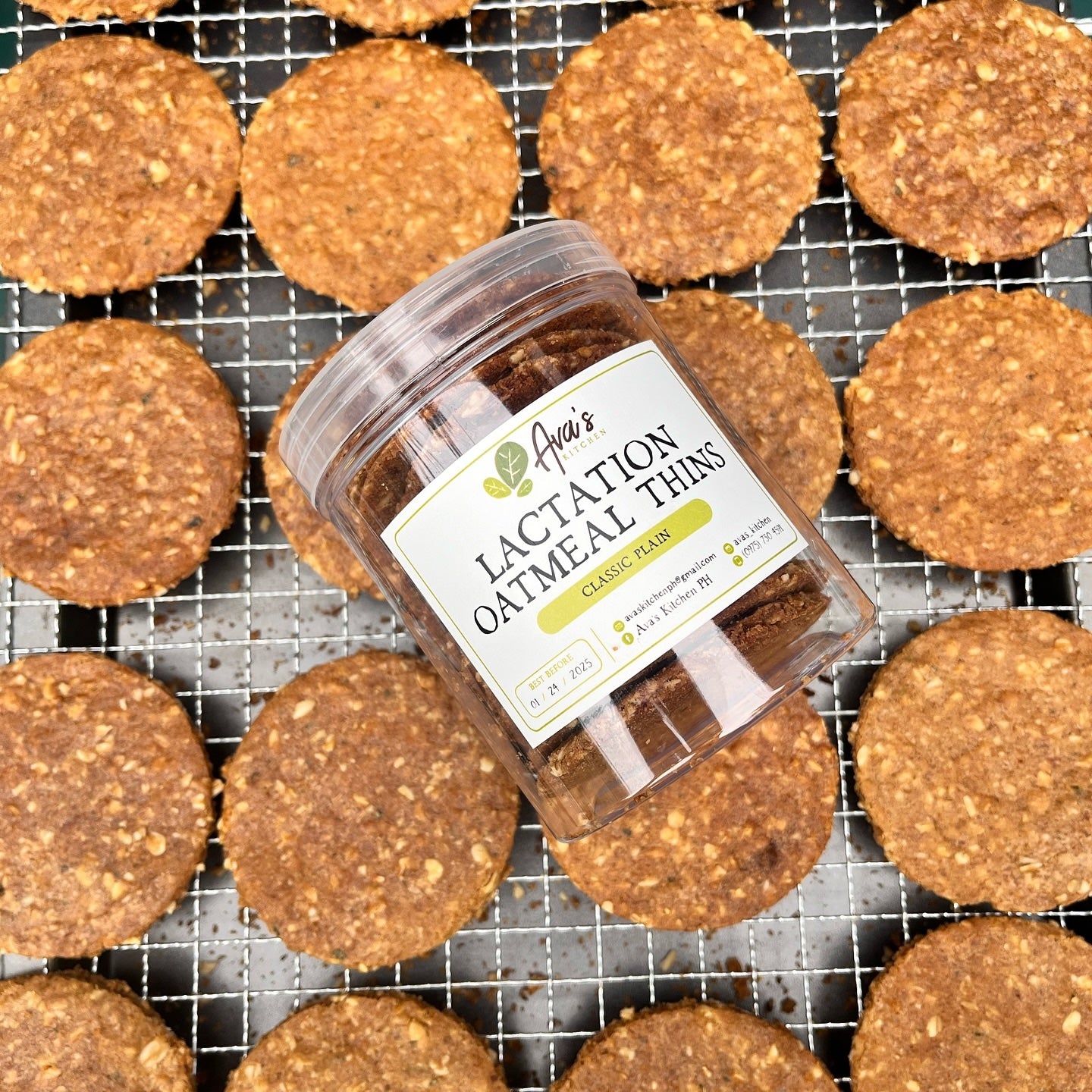 Satisfy your cravings and boost lactation with Ava's Kitchen's Lactation Oatmeal Thins. Perfect for snacking anytime.