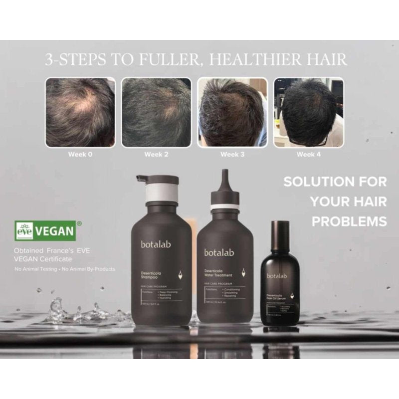Includes the Botalab Deserticola Shampoo, Water Treatment, and Hair Serum - a 3-step routine for fuller and healthier hair.