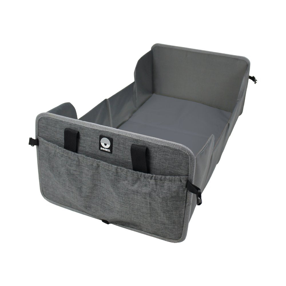 Designed for convenience, the Dooky Traveller folds down small, making it easy to store under a stroller or even in your car door. It features carrying straps and storage pockets for small baby essentials. The 1 cm thick foam mattress provides gentle support, and cleaning is effortless — just wipe it down with a damp cloth.