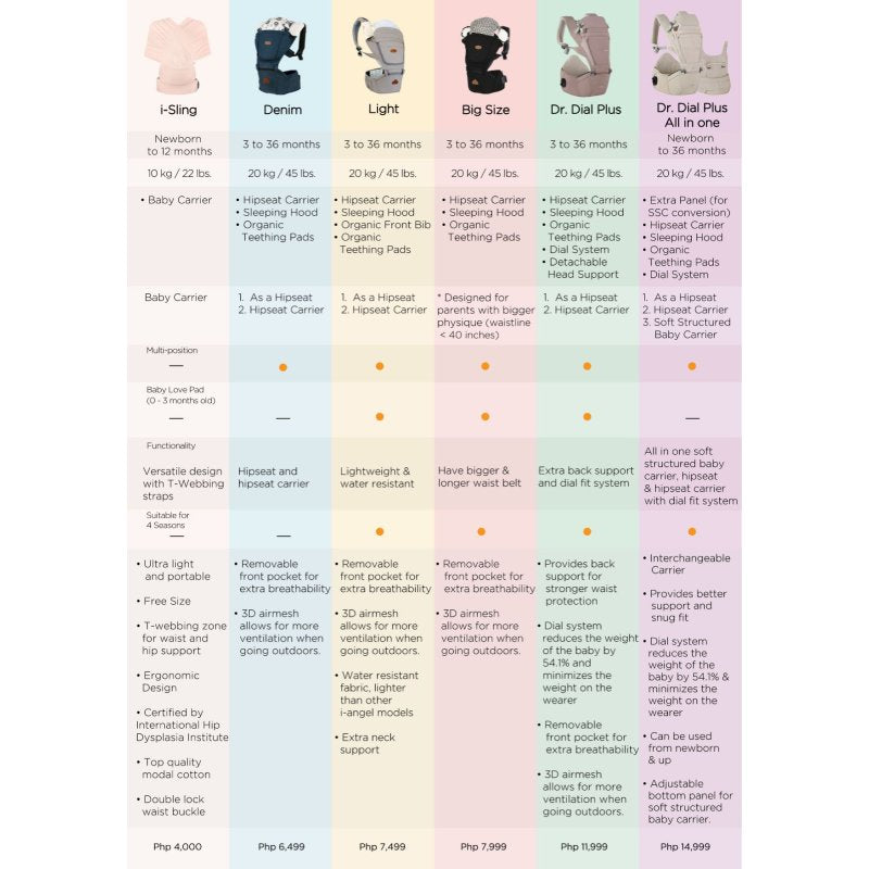 I-Angel I-Sling is simple and cozy. Thanks to its simple and natural design, you can create diverse styles that complement your other clothes. Its ergonomic design provides comfort for both mother and baby, with webbing straps that offer extra support to evenly distribute baby's weight and thus achieve maximum comfort, balance, and stability.