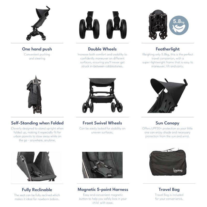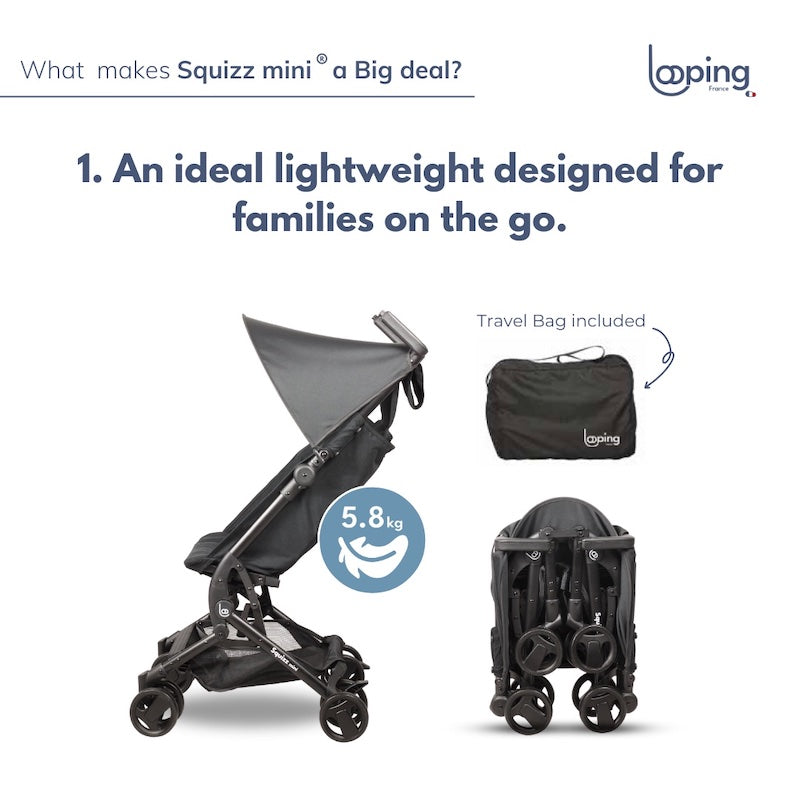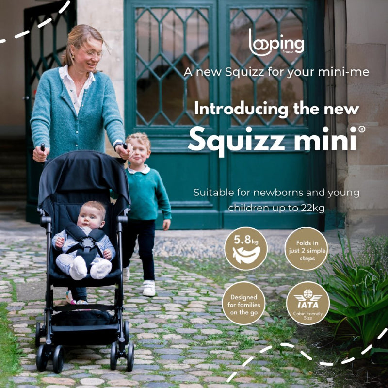 Introducing the new Looping Squizz mini, a lighter, smaller, more compact travel stroller that's big on adventures.