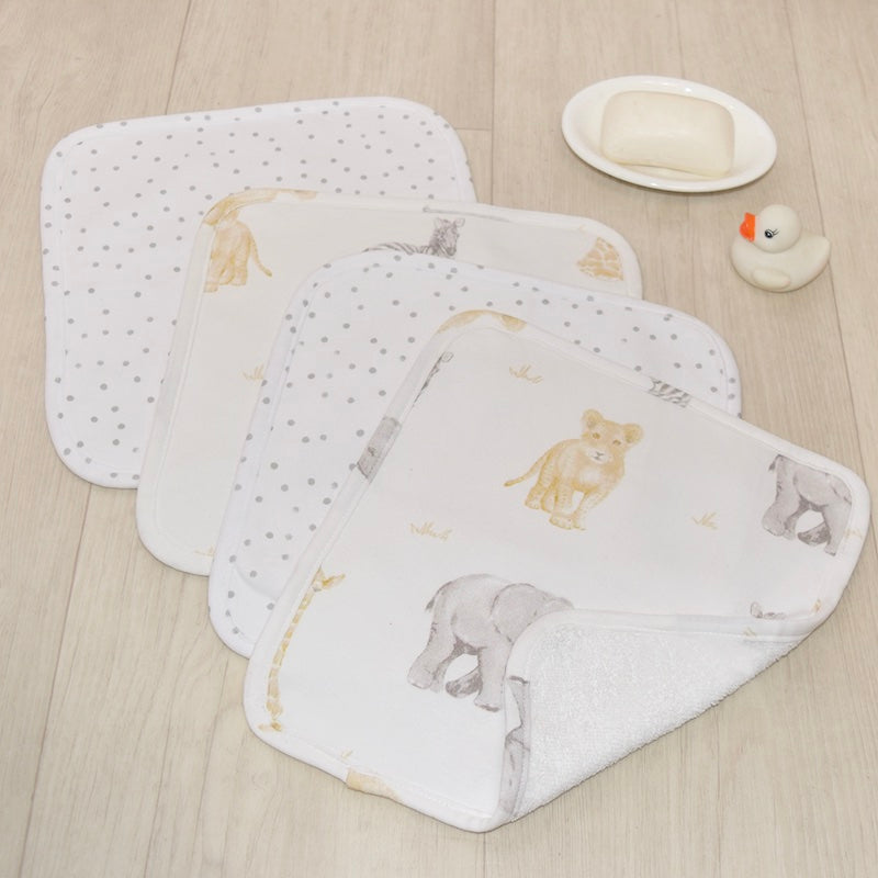 Add a touch of luxury to baby’s bath time with these 100% cotton wash cloths. Crafted from 100% cotton jersey and backed with soft and absorbent terry towelling, they are gentle against baby’s delicate skin.