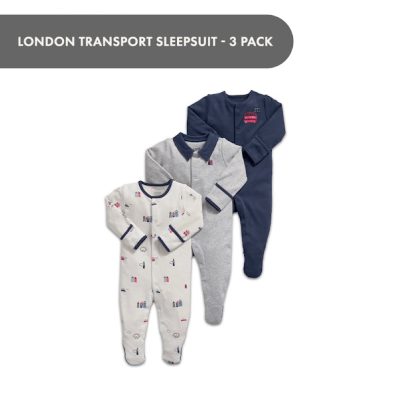 Mamas & Papas 3-Pack London Transport Sleepsuits