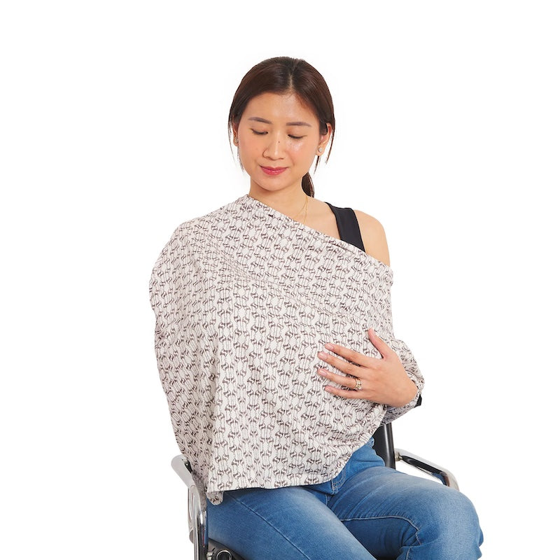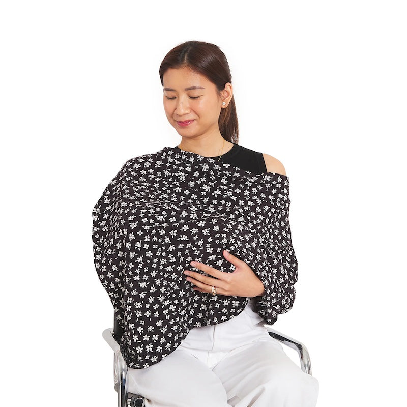 Made from ultra-soft, fine quality cotton blend, our signature breastfeeding cover is breathable, stretchable, lightweight and super-comfy for baby’s gentle skin. Durable enough to withstand multiple uses and washes. Compliments any outfit effortlessly, the frilled fall down to the belly adds a chic feature to it.