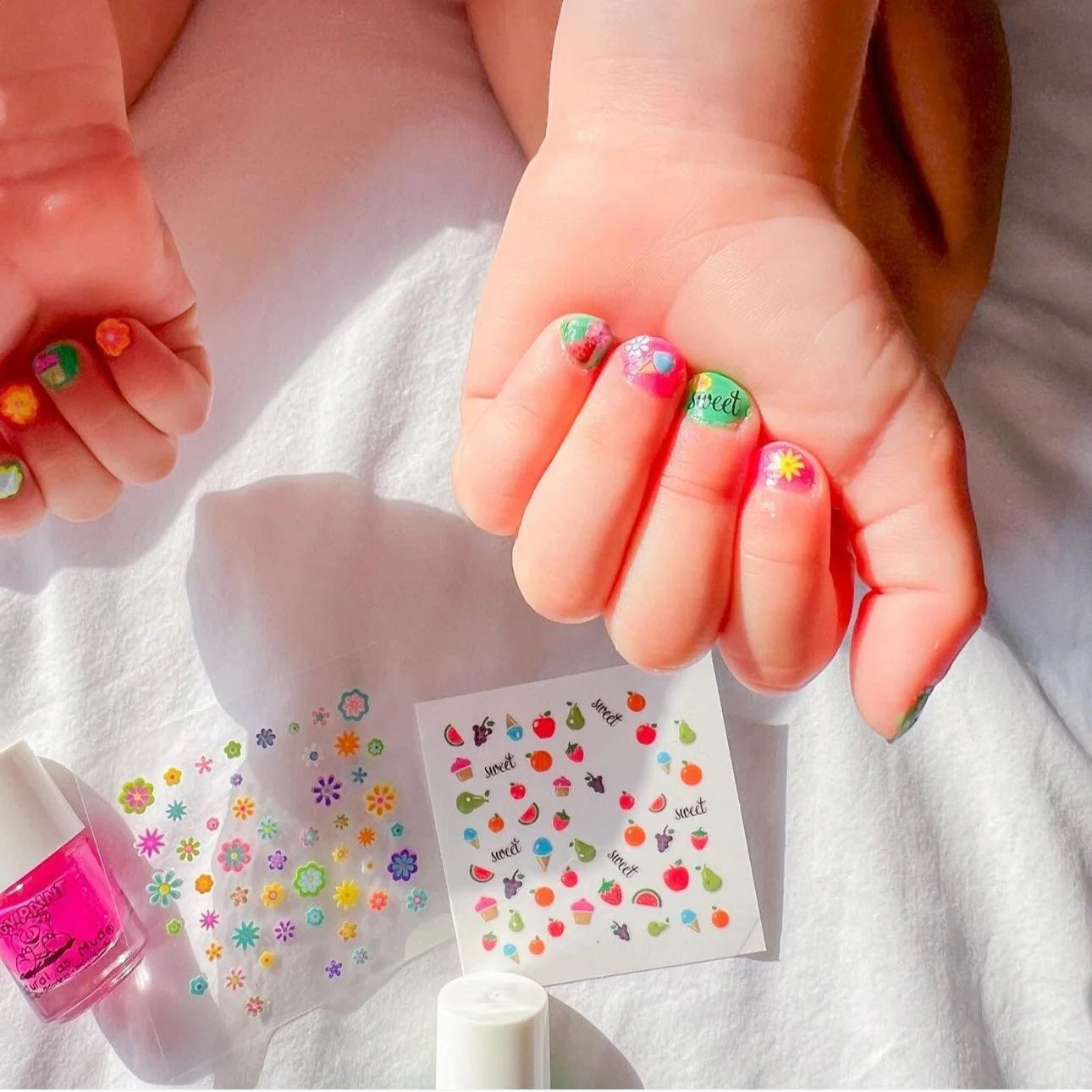 What's even better than a Piggy Paint manicure? A Piggy Paint manicure with fun 3-D Nail Art! First, paint your nails with your favorite Piggy Paint color. Next, top with Nail Art stickers for EXTRA fun and creativity! For long lasting wear, seal with Shine Topcoat & Blow Dryer.