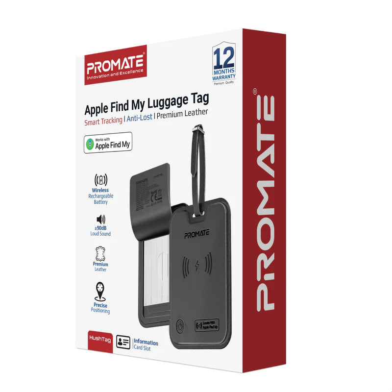 Promate HushTag Anti-Loss Slim Leather Luggage Tag with Smart Tracking