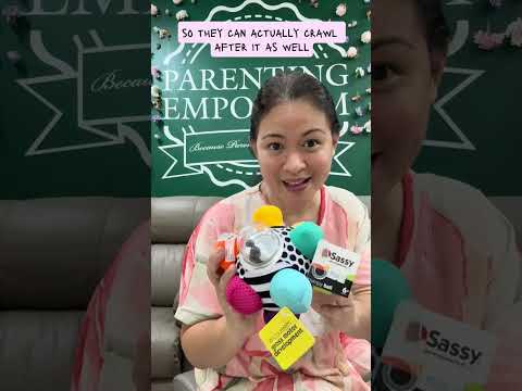 The bright colors, bold patterns and easy-to-grasp bumps make this ball a must-have. The high contrast colors of the ball allow baby to focus, strengthening vision. The gentle rattle sounds from the trapped beads create neural connections in baby’s brains from birth through 3 years of age. Chunky sized bumps on the ball encourage reaching, grasping, and transferring from one hand to another, developing baby’s motor skills. The differing materials engage baby’s developing tactile sensitivity and teach baby about variety.