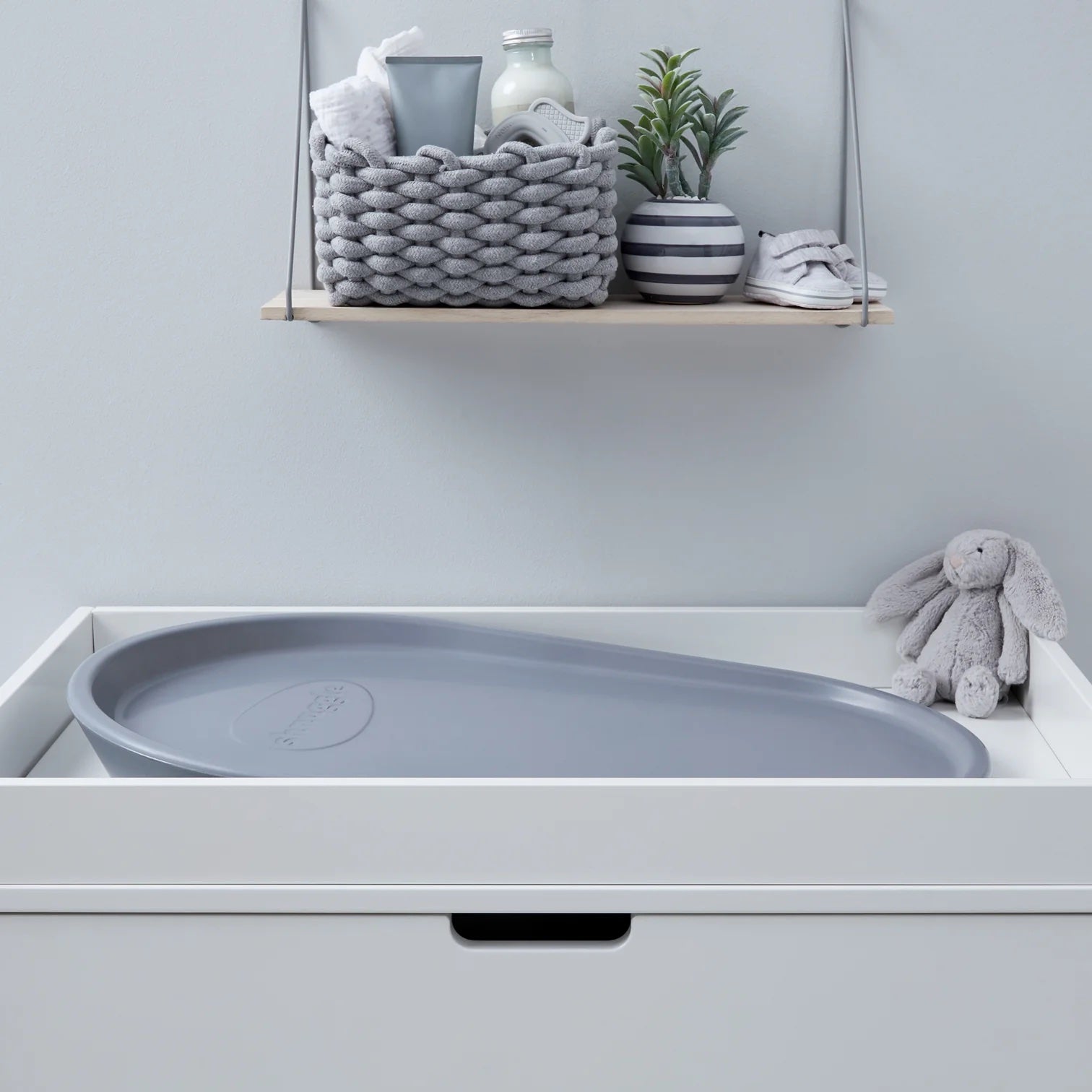 The Squishy Changing Mat fits perfectly on top of your changing table or dresser or can be used on it's own anywhere around the home or when travelling. Wherever you need it!
