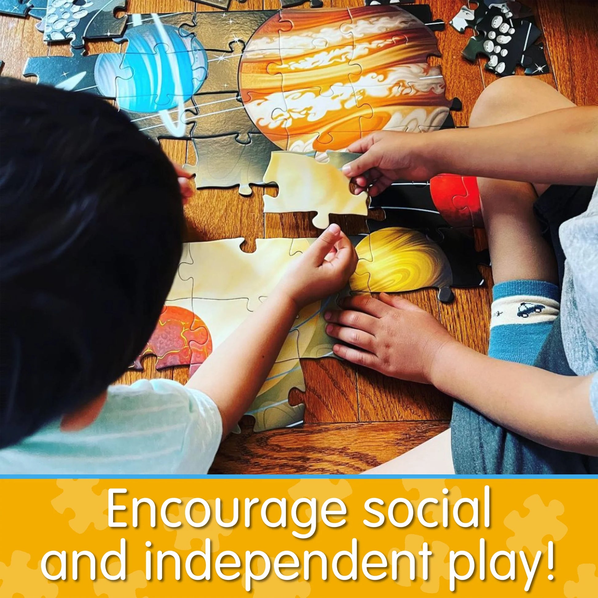 KEY FEATURES - Expand your knowledge of the solar system with this 100-piece Puzzle Double! After you put the puzzle together, turn off the lights and the puzzle glows in the dark! Turn the puzzle over and you have a coloring activity. The bright illustrations encourage parent-child conversation. The puzzle measures a giant 3’ x 2’! Ages 3+ years.