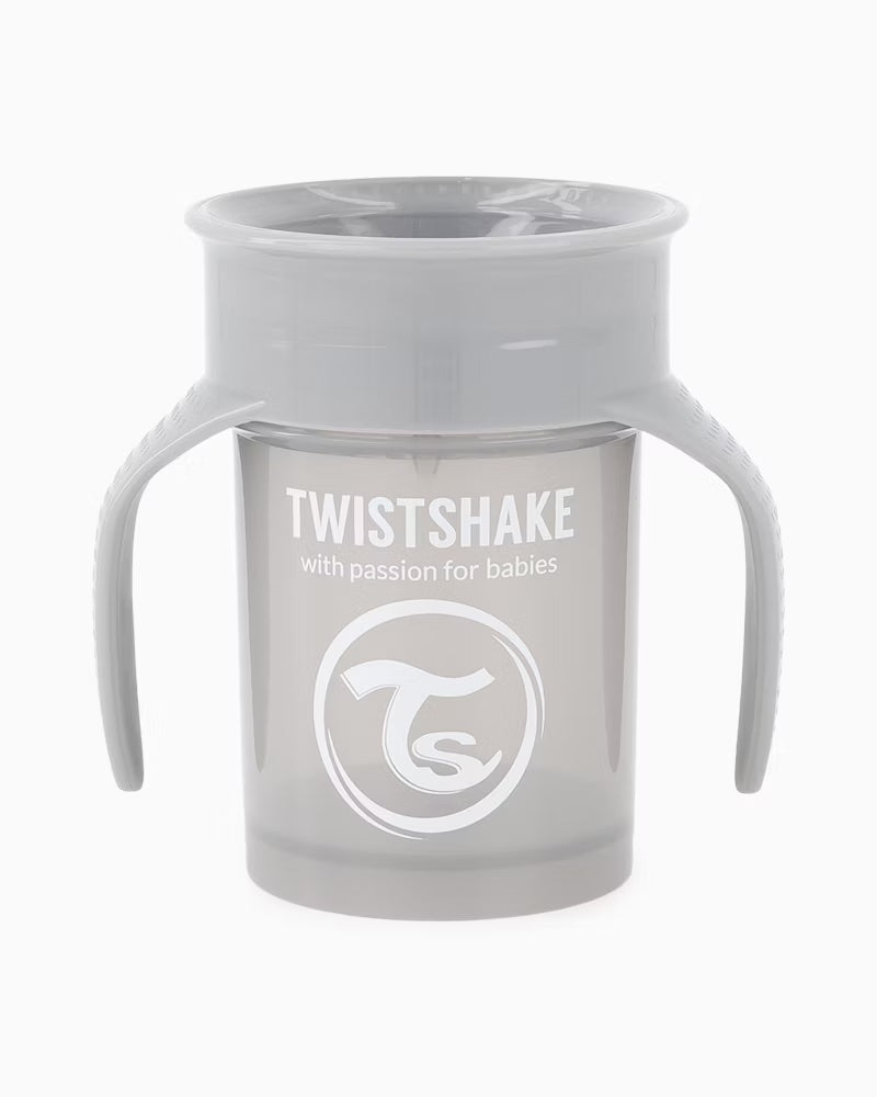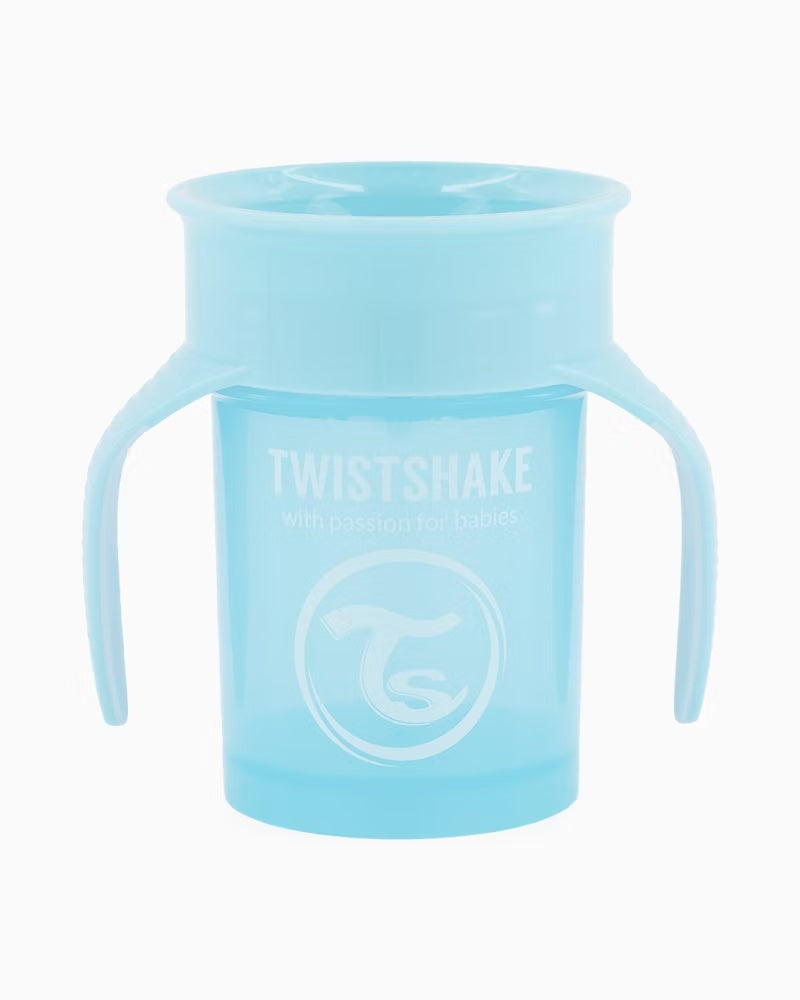 Twistshake's innovative Spill-free 360 Cup makes it easier for your child to drink independently. The 360-edge allows drinking from all around, just like a regular drinking glass. It is also spill-proof and has two easy-to-grip handles. The cup holds 230 ml and is suitable for children from 6 months old.